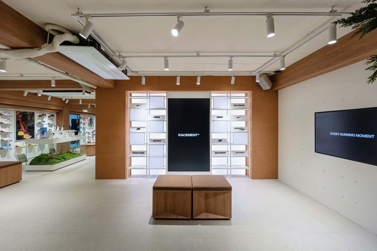 고도에 따라 변화하는 자연 속 러닝의 여정을 산(山)이라는 모습으로 은유하여 산 속 변화하는 식생들로 층마다의 컨셉을 주어 대자연 공간으로 표현한 러닝화 편집숍