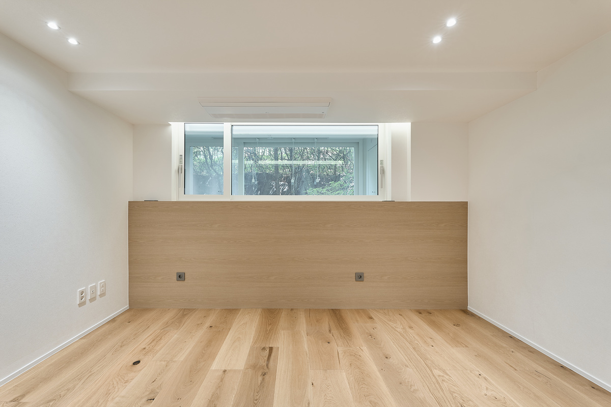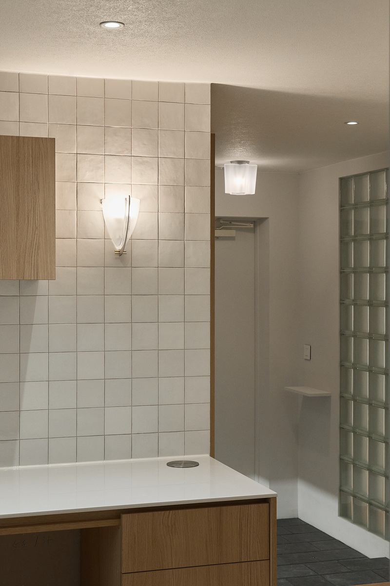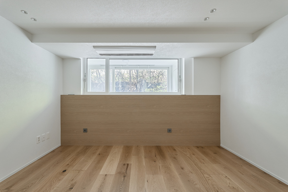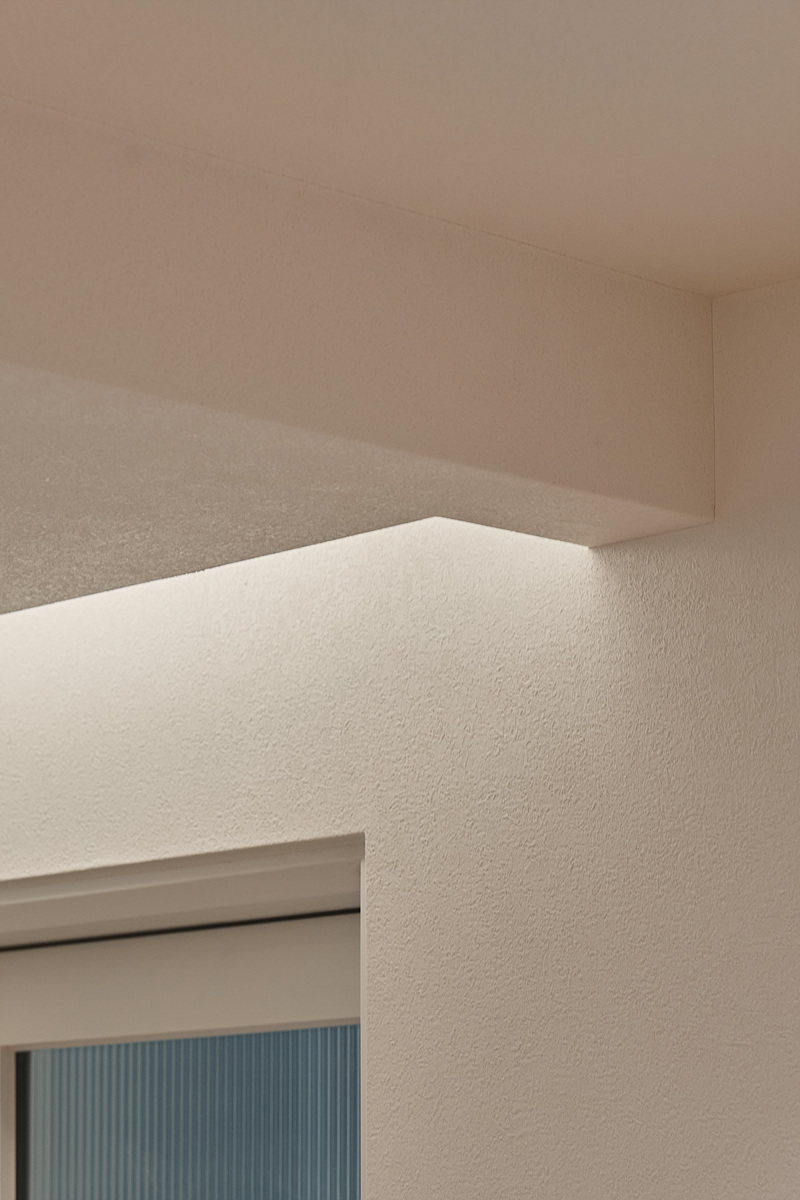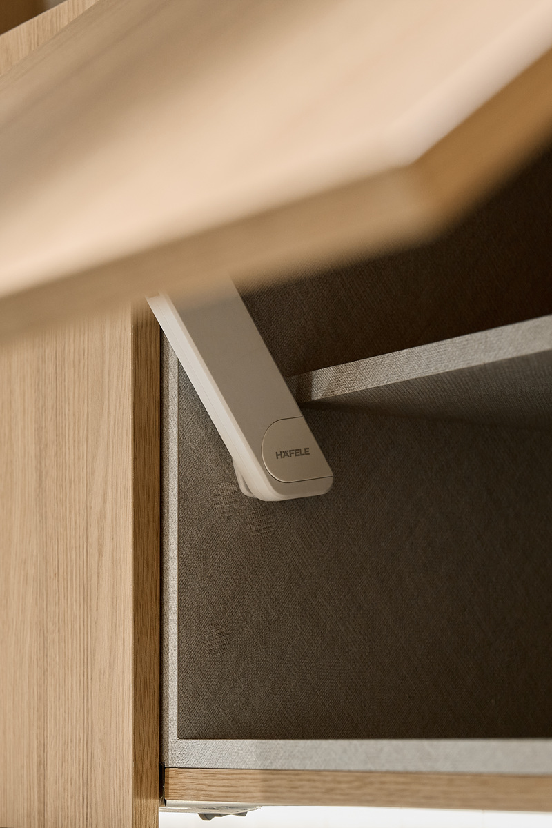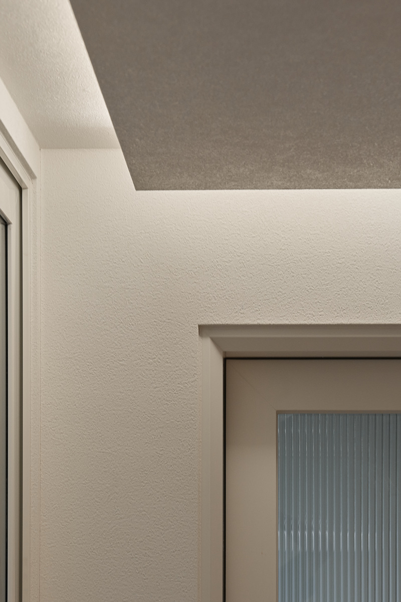 무몰딩의 미니멀한 공간감 속 촉촉한 무드의 유악타일, 따뜻한 촉감의 원목마루 등 자연스러운 소재들을 활용한 따듯한 무드의 22py 아파트 인테리어